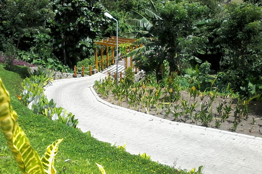 Have an exhilarating jog at a steady gentle pace with lush tropical garden surrounding you.